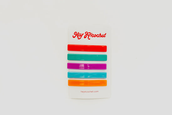 Slip into your favorite romantasy series with the ACOTAR Cover Slides. Inspired by the beloved A Court of Thorns and Roses series by Sarah J Maas, this set of 5 clips brings the iconic color palette of the book covers into your everyday style. Backed on super strong bobby pin style slide clips, the ACOTAR Cover Slides hold back your locks while telling every other book lover- I'm one of you.