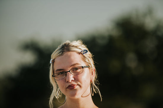 Designed in Austin, Texas and responsibly made in China, the Bluebonnet Setting Clips are hand assembled from plant-based cellulose acetate. Due to the nature of the materials and process, each piece is unique and small variations will occur.