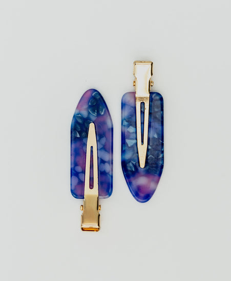 The prettiest flower in the patch. The Bluebonnet Setting Clips are creaseless setting clips, ideal for makeup application, skincare, and styling in all types of hair. The Bluebonnet Setting Clips come in a textured blue, purple, and white.