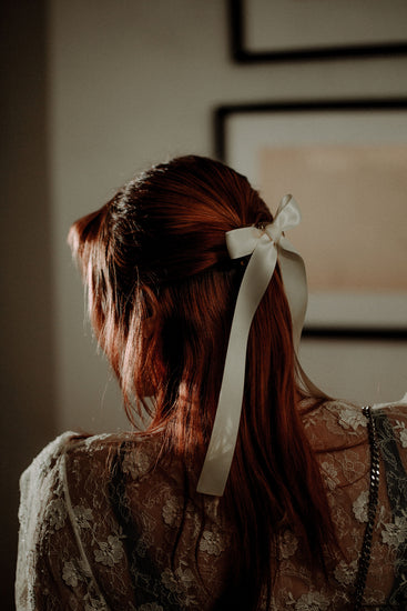 Simple and sweet. Our Bow Mini Claw is an elevated spin on our standard Mini Claw shape, with fabric ribbon threaded through the clip to create an easy to wear bow that actually holds your hair up. Available in elevated holiday shades: cream, rose, light blue, and bordeaux.
