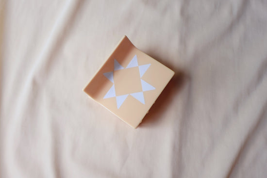 Quilt love in a claw clip. The Butter Quilt Claw features a traditional quilt block pattern laid into a super strong hair clip. This medium claw is best suited for average to thick hair types and comes in a smooth butter yellow with a solid white inlay.