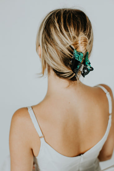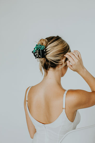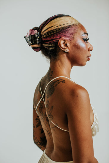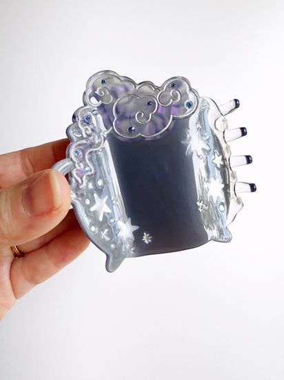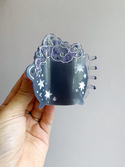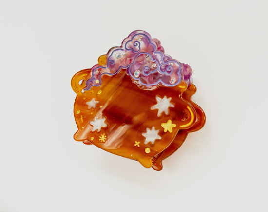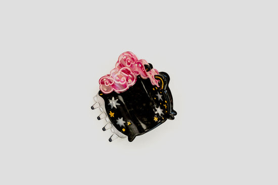 Bewitch your lazy hair days with the best-selling Cauldron Claw, now back and better than ever. In black and pink for spooky season, the updated claw has redesigned teeth made with thicker hair in mind to give you a better, more comfortable hold. Featuring a variated black acetate base with semi-transparent hot pink smoke and star and gem accents.
