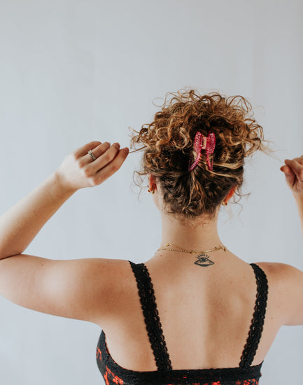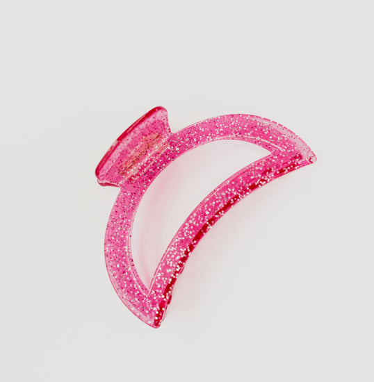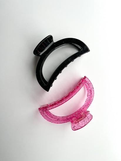 In the name of the moon! Moon babes unite, the Crescent Claw is here. A big claw with secure hold for thicker hair, our best-selling Crescent Claw is now in two new colors– swirling black and glittery hot pink. These acetate claws have a cut out center with a smooth curved shape that sits comfortably against the back of the head.