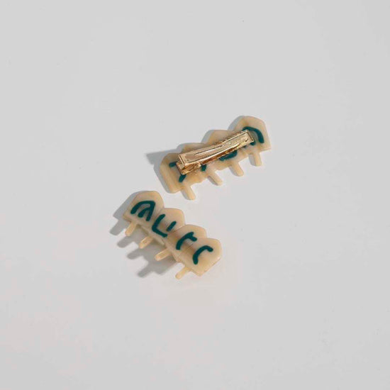 Designed in Austin, Texas and responsibly made in China, the Dreidel Clip is hand spliced together from plant-based cellulose acetate. Due to the nature of the materials and process, each piece is unique and small variations will occur.