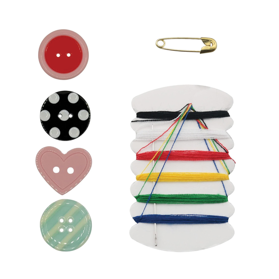 The In a Stitch Sewing Kit is an exclusive collaboration between Elizabeth Bay and Hey Ricochet. Designed in Austin, Texas and Denver, Colorado and responsibly made in China, the In a Stitch Sewing Kit buttons are hand assembled from plant-based cellulose acetate. Due to the nature of the materials and process, each piece is unique and small variations will occur.