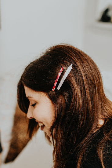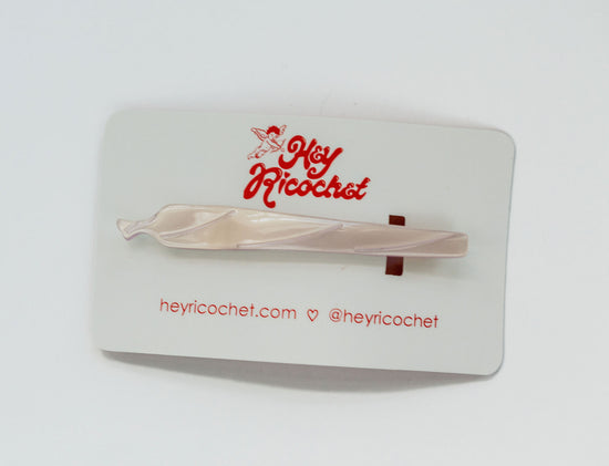Puff, puff, pass the cutest clip you’ve ever seen. The Lifted Slide features a hand rolled cigarette with a shiny, engraved cream body with a surprise peek of purple in the center. Backed on a super strong, bobby pin style slide, this low profile clip is the perfect subtle nod to garden girls.