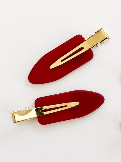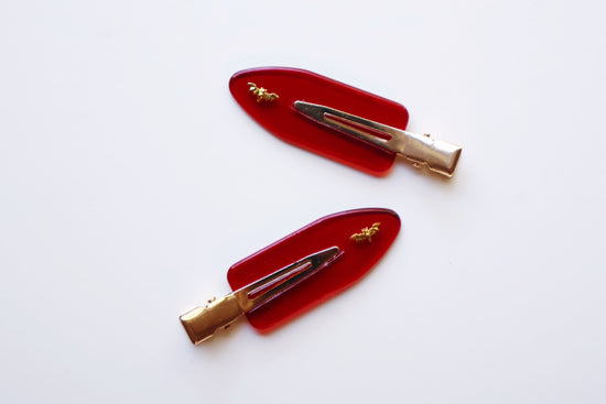 For the strange and unusual girl! Our Setting Clips come in sets of 2 and are ideal for makeup application, skincare, and styling in all types of hair. The Lydia Setting Clips come in a bright transparent red.