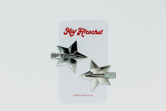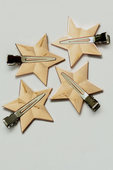 Too cool for school. These metal stars are lay flat clips for setting your hairstyle or wearing out on the town. Magic Girl Metal Stars are sold in sets of two matching stars, available in silver, gold, and rose gold variants.