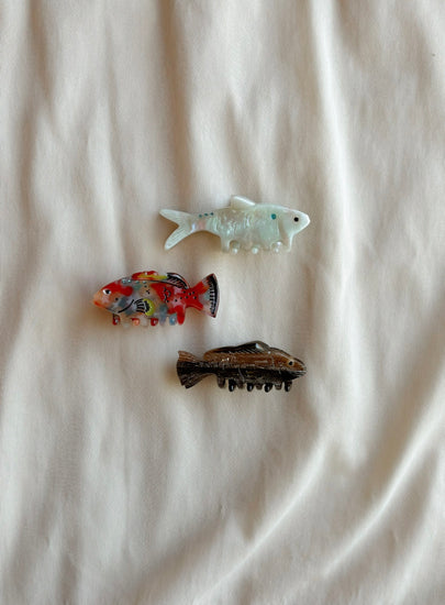 Take your hair swimmin' with the fishes. These Mini Fish Claws can be used for short styles, pinning hair on the side, or accessorizing an entire coastal inspired look. Mini Fish Claws come as single fish or in mixed sets of 3.