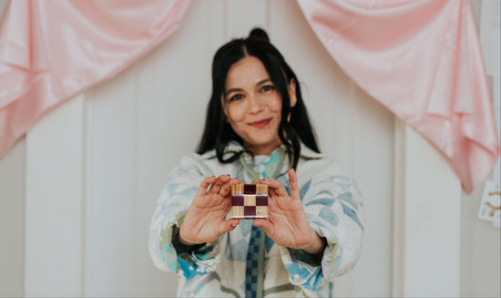 Designed in Austin, Texas and responsibly made in China, the Nine Patch Quilt Block Claw is made from plant-based cellulose acetate. Due to the nature of the materials and process, each piece is unique and small variations will occur.