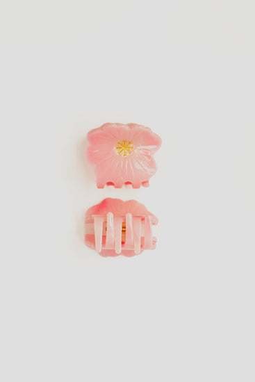 Pretty in pink. The Evening Primrose Claw is a small hair claw that has a super strong hold. Made to resemble a pink evening primrose flower with variated pink petals, a spliced and engraved center, and gold fill detail. Ideal as a hold-all clip for fine to medium hair types, and for half up half down styles