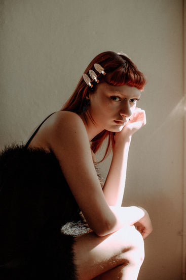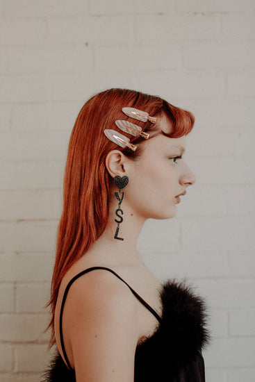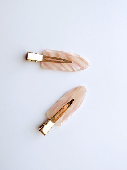Designed in Austin, Texas and responsibly made in China, the Pink Shimmer Setting Clip Set is hand spliced together from plant-based cellulose acetate. Due to the nature of the materials and process, each piece is unique and small variations will occur.