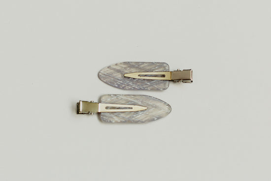 Designed in Austin, Texas and responsibly made in China, the Silver Tinsel Setting Clips are hand assembled from plant-based cellulose acetate. Due to the nature of the materials and process, each piece is unique and small variations will occur.