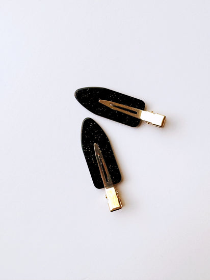 Designed in Austin, Texas and responsibly made in China, the Sparkle Sparkle Setting Clip Set is hand spliced together from plant-based cellulose acetate. Due to the nature of the materials and process, each piece is unique and small variations will occur.