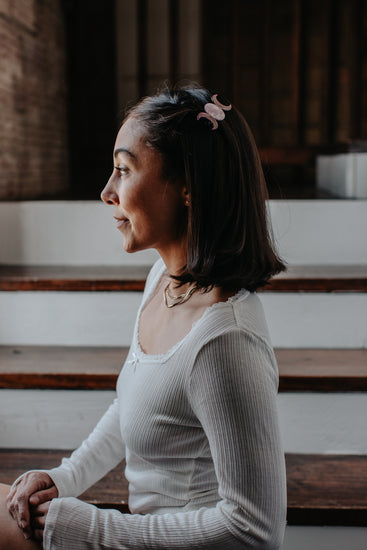 Designed in Austin, Texas and responsibly made in China, the Triple Goddess Barrette is hand spliced together from plant-based cellulose acetate. Due to the nature of the materials and process, each piece is unique and small variations will occur.