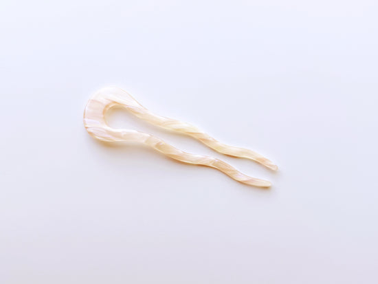 Designed in Austin, Texas and responsibly made in China, the Wavy French Pins are made from plant-based cellulose acetate. Due to the nature of the materials and process, each piece is unique and small variations will occur.