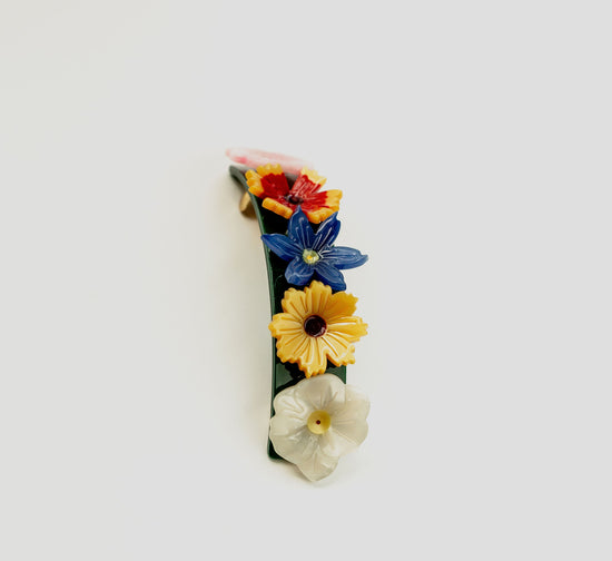 Florals? For spring? Groundbreaking. The Texas Wildflower Barrette is a way to keep springtime around all the time, featuring five 3D wildflowers set across a large French barrette backer. These clips are no joke—super strong hold, bright colors, and a piece that will turn heads everywhere you go.