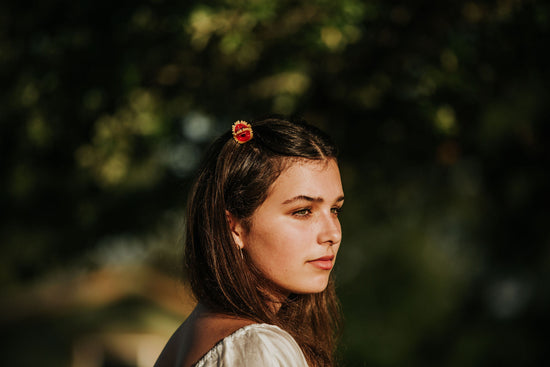 Be sure to wear some flowers in your hair. These butterfly clip sized mini claws showcase some of our favorite Texas wildflowers—Prickly Poppy, Indian Blanket Flower, and Coreopsis. Each flower has a spliced acetate center and engraved details on the petals. Wildflower Mini Claws come in packs of 3 to be worn as single clips or a mixed set.
